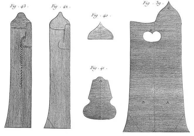 Diagrams relating to the construction of women’s leather mitts from the Encyclopédie ou Dictionnaire raisonné des sciences, des arts et des métiers (1765).