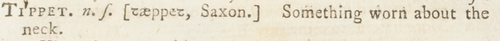 What is a tippet? Let’s turn to the ever-informative Samuel Johnson for a definition: